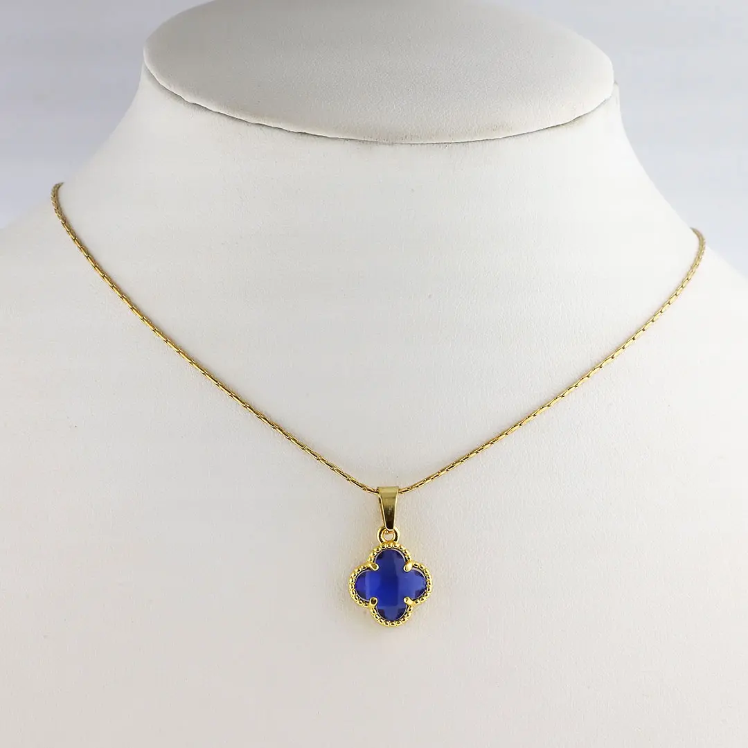 COLGANTE TREBOL AZUL ACERO DORADO