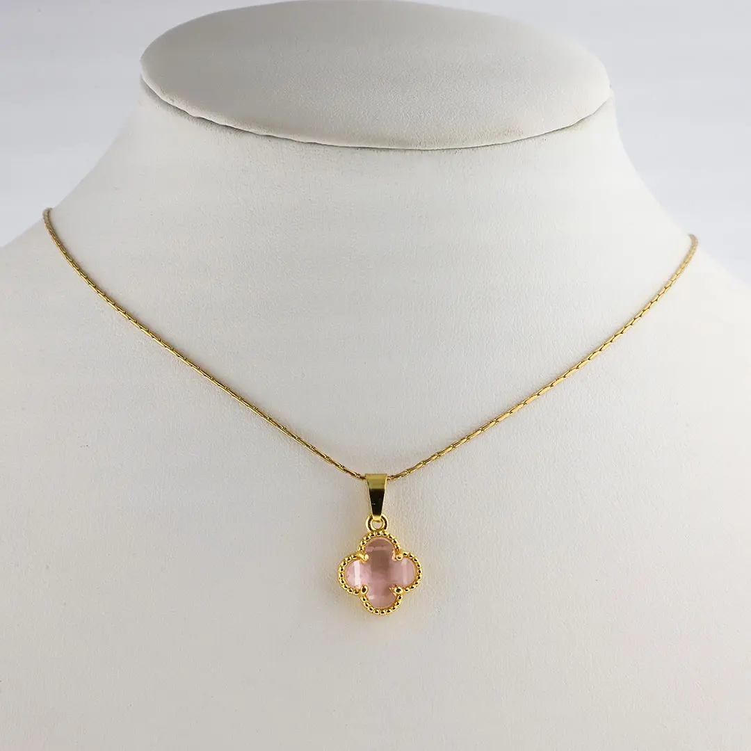 COLGANTE TREBOL ROSA ACERO DORADO